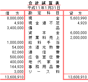 仕訳帳の1月の仕訳をすべて総勘定元帳に転記し終わったら、合計試算表・残高試算表・合計残高試算表を作ってみましょう。